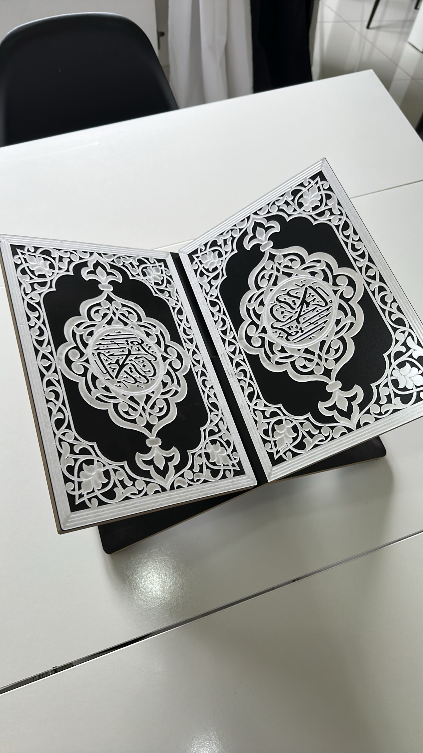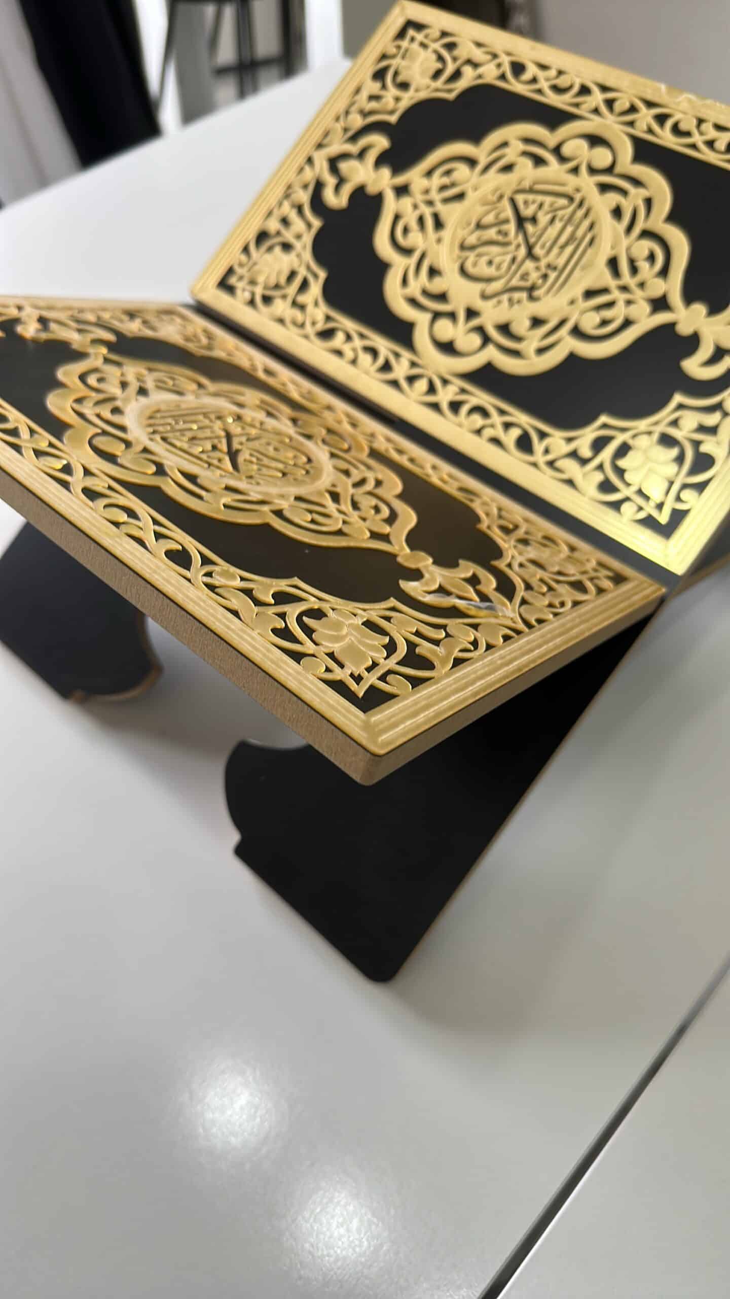 - Confort de Lecture : Le support maintient le Coran dans une position ergonomique, ce qui permet de lire pendant de longues heures sans inconfort.